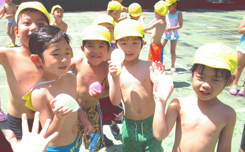 一人ひとりがしっかり水風船を握って、準備万端です☆