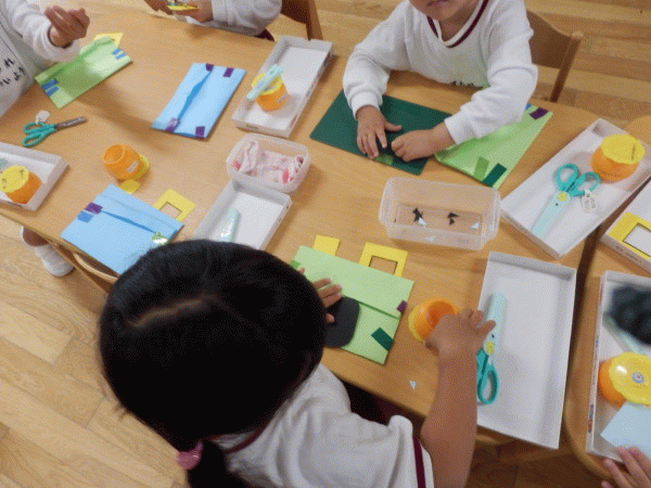 はさみの使い方がだんだん上手になってきた年少さん。