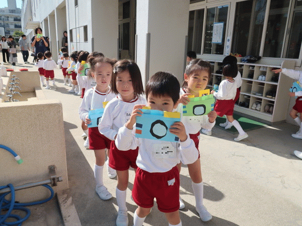 朝礼が終わると、制作「カメラ」をしました☆
