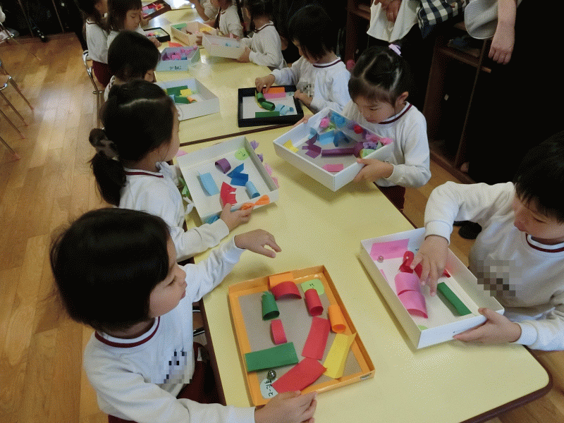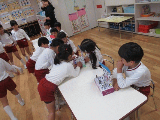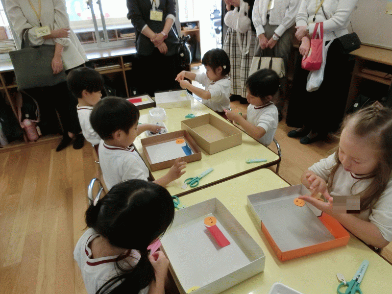 「この箱を使ってゲームをするよ」と子どもたちに言うと目を輝かせながら興味津々でした!