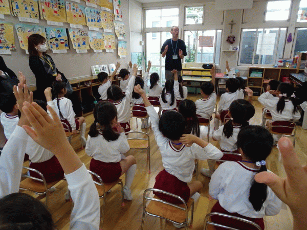 「神様が好きな子どもってどんな子どもだろう?」と質問をされると、「優しい子ども!」など自分達で考えて発言する姿も見られました。