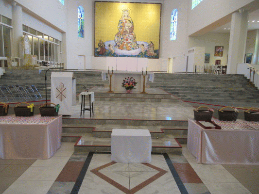 その後、神父様が子ども達とおメダイを聖水で祝福してくださいました。