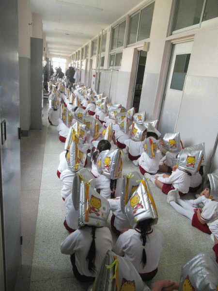 3階以上への避難が必要な為、幼稚園の子ども達は高校校舎の3階に避難します。