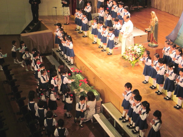 たくさんの保護者の皆様にご参加いただき、講堂にて、聖母祭が行われました。