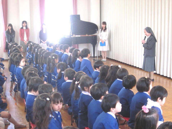 「今年は、今までよりももっと、きれいな心、明るい子どもになれるように、神様からのお恵みを使って、毎日、元気に過ごしましょう!」