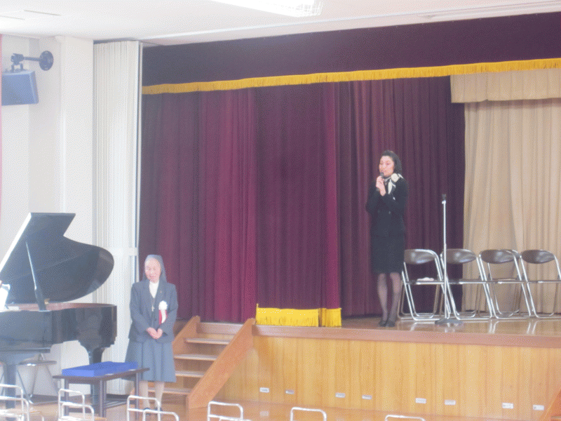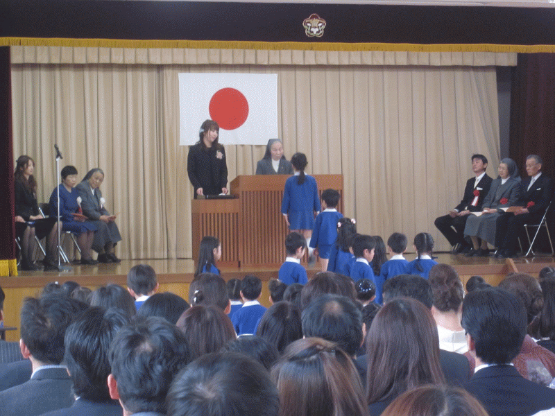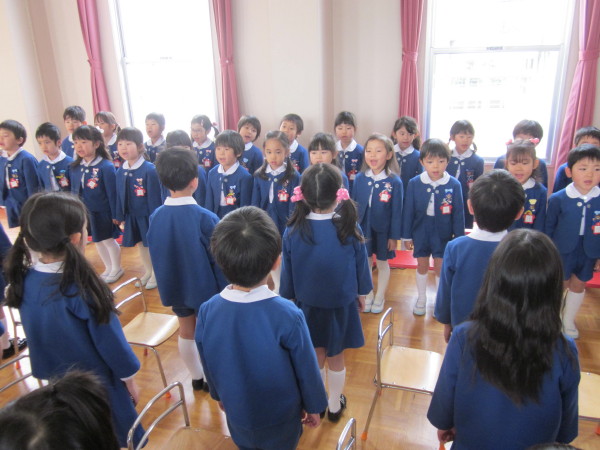 恥ずかしさで少しどきどきした様子で、修了式に参加していました。