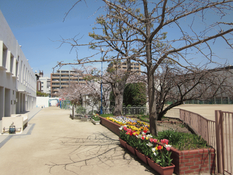 卒園したお兄さん、お姉さんが育てたちゅーりっぷと、花壇の三色すみれが、