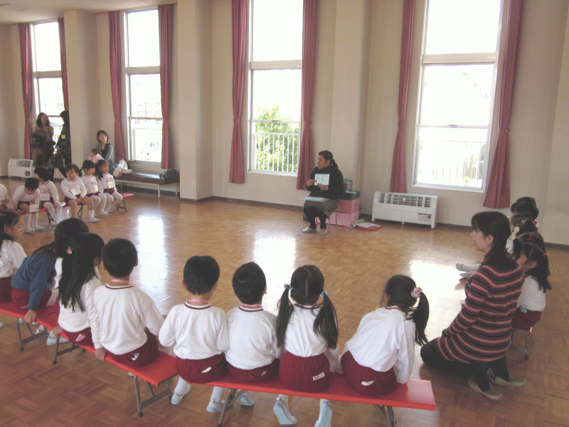 はじめに、先生から節分のお話を聞きながら、