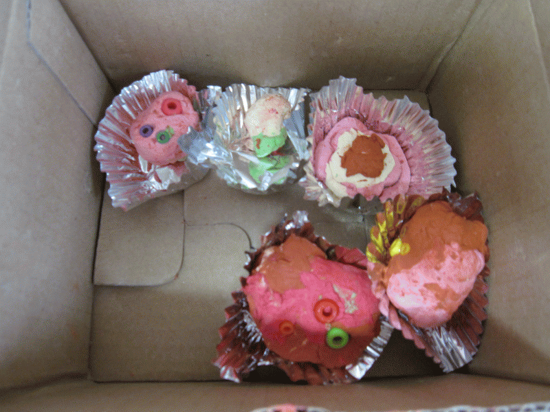 紙粘土に、クリーム色を混ぜてスポンジに見たてました!