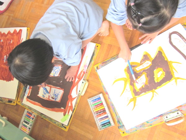 年中組は絵の具遊びをしました♪