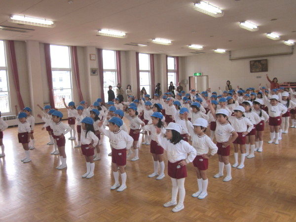 お話を聞いた後は、ピーターパン体操をして体を十分に