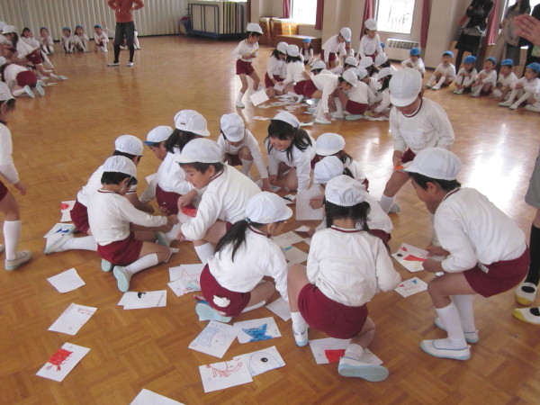 各クラス半分に分かれて、絵が完成するように同じカードを