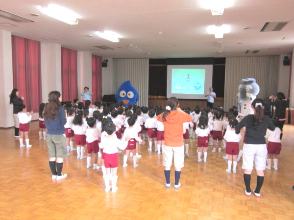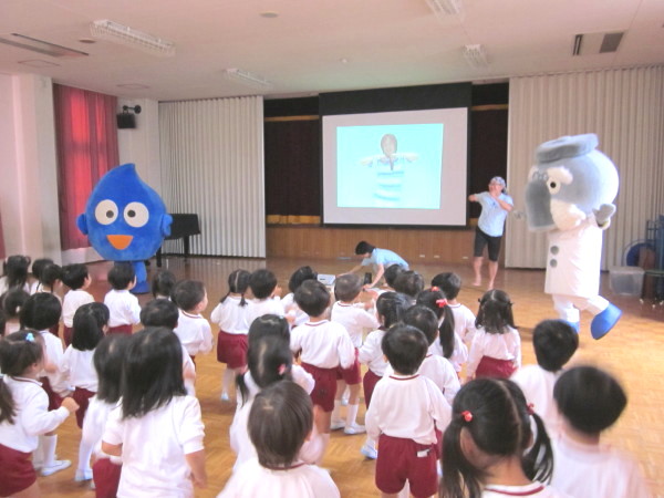今日は幼稚園に、大阪市水道局の方が来て、