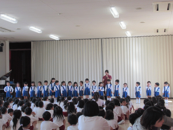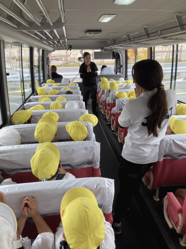 怪我のないよう、安全に楽しんで行くことができますように…お祈りをお捧げし、園長先生からも「お約束や先生の話をしっかり聞いて、楽しんできてね☆どんなことをしたのか教えてね」とお話をいただきました。