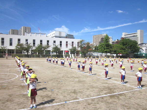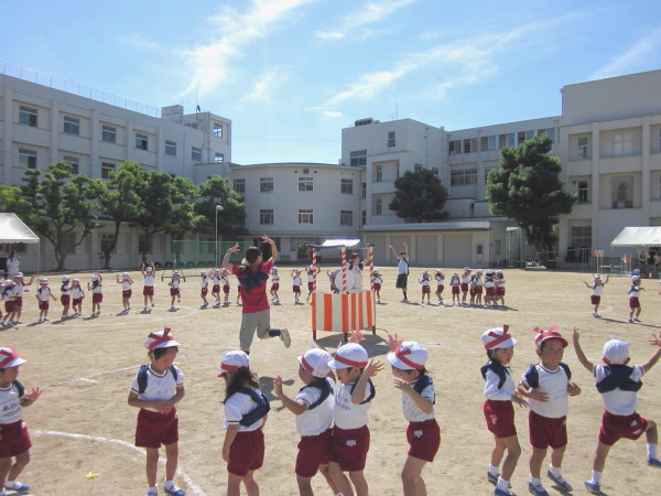 年少さんは、ビックリして泣いたお友達もいたけれど、すぐに立ち直ってみんなと一緒に神妙な顔つきで、先生の後を追いかけるように、いざ!運動場へ・・・☆