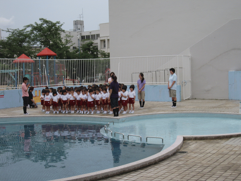 子どもたちは、ドキドキしたシャワーや、初めてのプール遊びが楽しく過ごせたことを思い出し、いろんな遊びをしたプールを見ながら、お祈りをしました☆