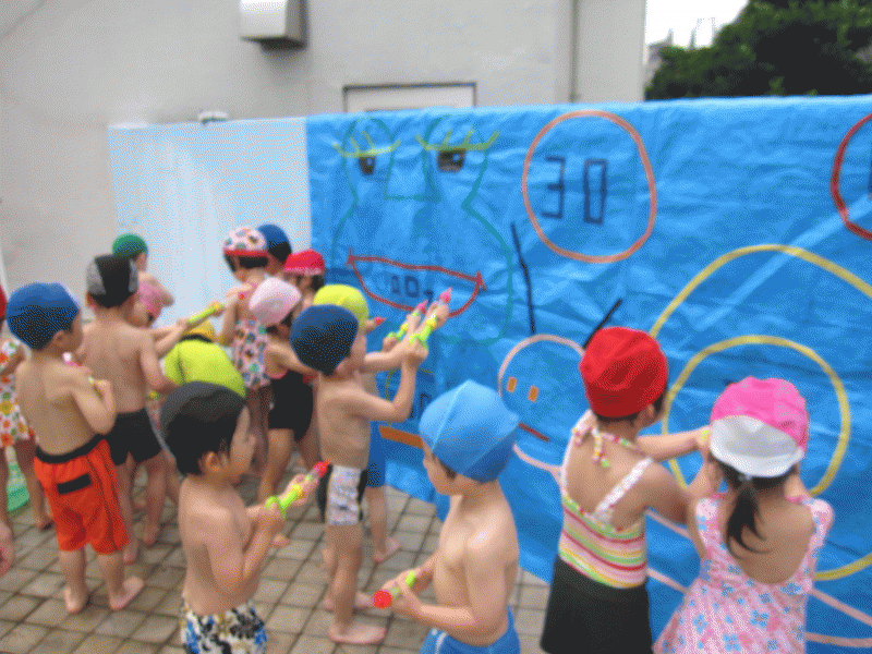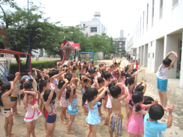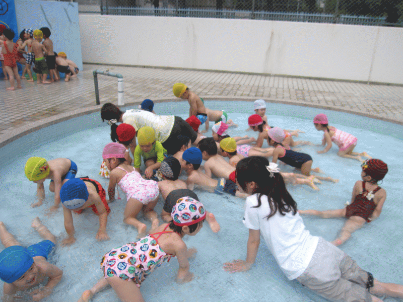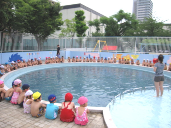 年中組からは大きななプールに入るので、子ども達もドキドキしているようでした。