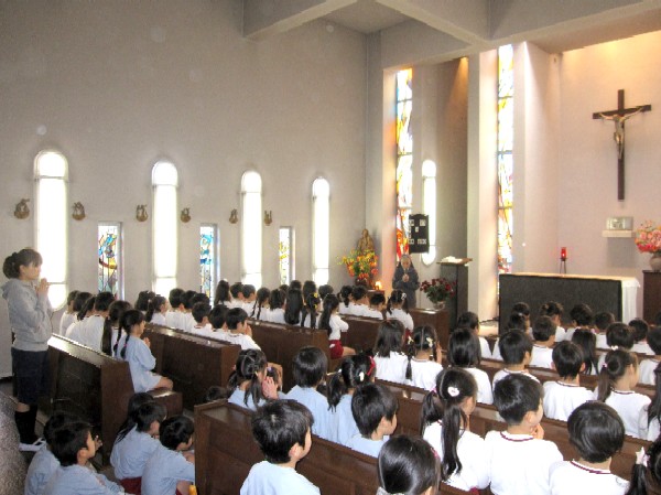 きれいに飾られたお花を眺めたり、十字架のイエス様を見上げて