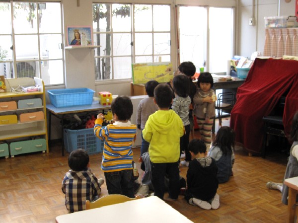 ドンボスコのお話の後は、年長は、年中や年少と