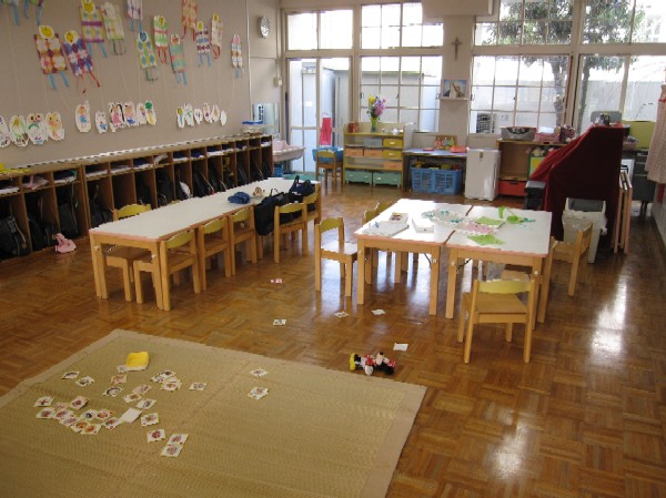 部屋で遊んでいた子も、遊戯室・園庭で遊んでいた子も