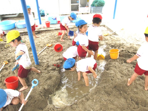 お砂場も盛大に水を使って露天風呂?作り。