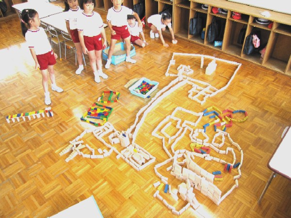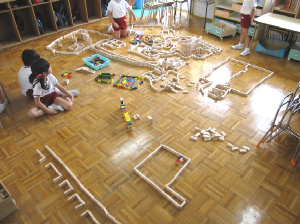 お部屋では年長組さんが、積み木でリゾートホテルを作っていました!