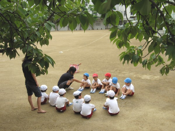 こちらは、グランドの片隅で何やら作戦会議・・・。