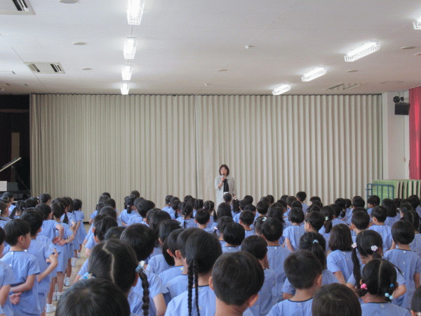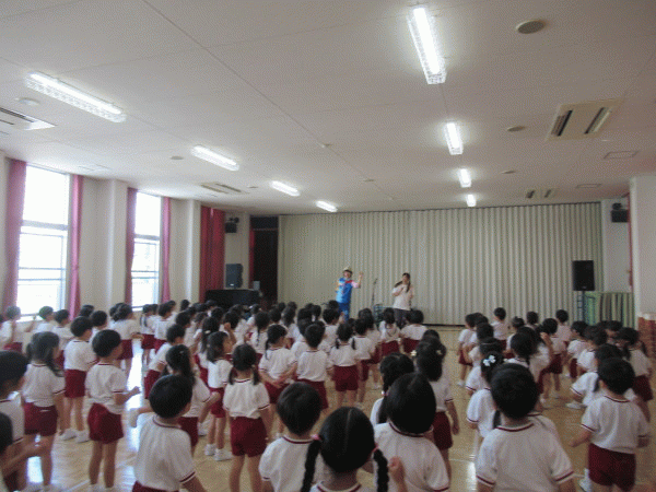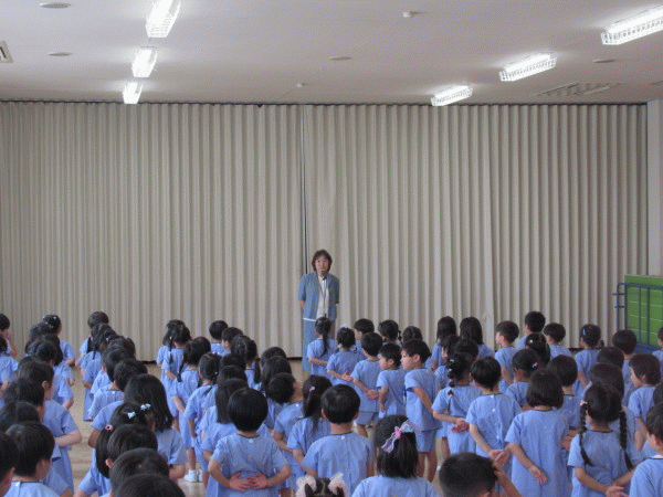 園長先生から、1学期に成長したみんなのお話や、夏休みの過ごし方についてのお話をしていただきました。
