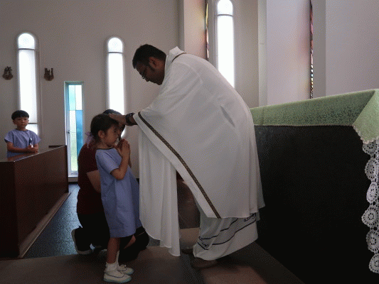 お祈りの集いの最後には、一人ずつ神父様から祝福もいただきました。