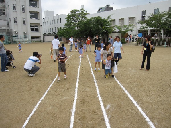 グランドに出た後は、クラス毎に整列、点呼をし報告します。