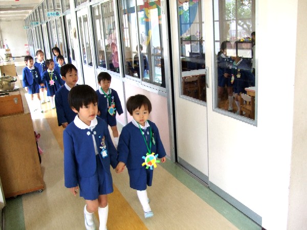 年中さん、年長さんは、近くにいるお友達と楽しくお話しながら歩きました☆
