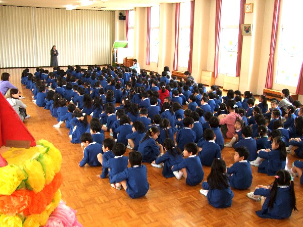 「みなさん、幼稚園には少しづつ慣れてきましたか?分からないことがあったら、お兄さん、お姉さんが優しく教えてくれますからね」
