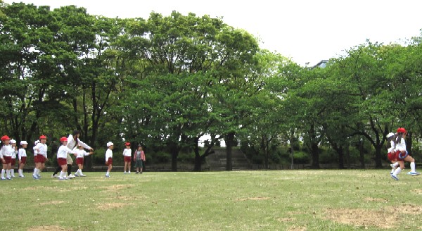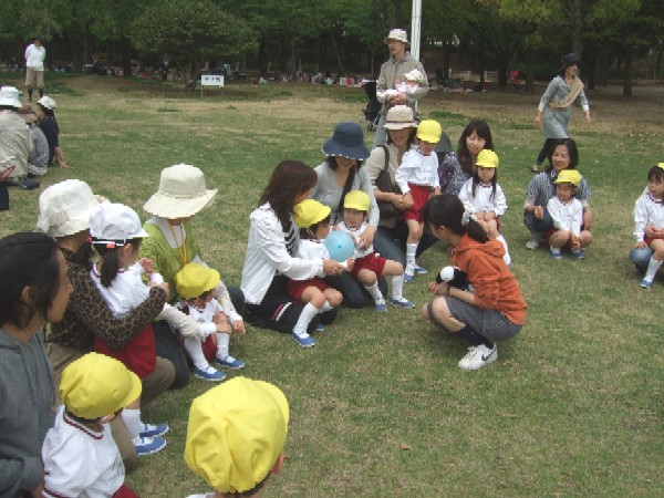 ばら組は、ボール送りゲームで遊んでいるのかと思えば。。どうやら遠足でクラス競争するらしく、密かに特訓中のところでした。。。