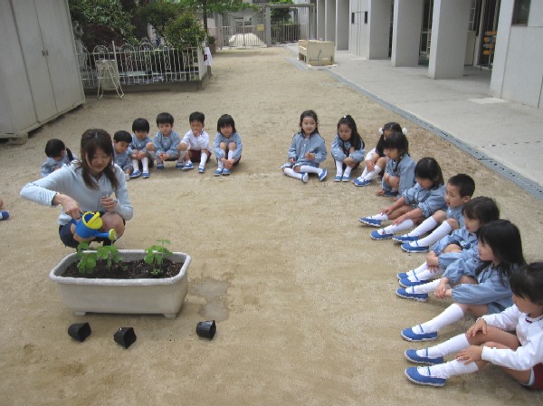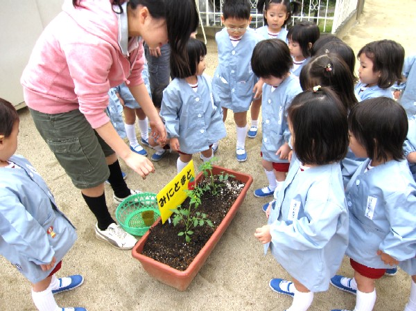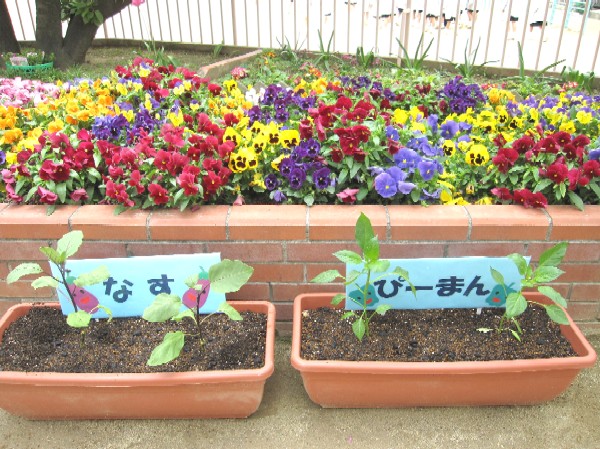 毎年、幼稚園ではクラスや学年で、野菜を栽培しています。