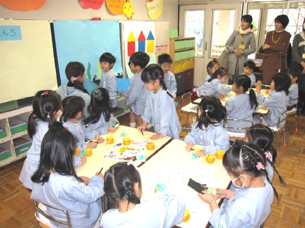 全 2086 件(全418ページ) 過去のページもご覧いただけます ⇒ 前へ 396 | 397 | 398 | 399 | 400 | 次へ 2009/1/23 1月誕生会☆ 今日は、1月生まれの子どもたちの誕生会☆歌のプレゼントと、おメダイを頂いて、とっても嬉しそうな子どもたち♪先生達からのプレゼントは、マジックショー★先生が魔法の箱に入って、「1、2、3、ドーーン!!」みんなで呪文を唱えると・・・なんと!中に入っているのはさっきとは違う先生!子どもたちは「先生がいない(>_<)!!」「不思議だね!」と、大盛り上がりでした♪さてさて、この後、最初に箱に入った先生は見つかったのかな? 今日は、1月生まれの子どもたちの誕生会☆歌のプレゼントと、おメダイを頂いて、とっても嬉しそうな子どもたち♪先生達からのプレゼントは、マジックショー★先生が魔法の箱に入って、「1、2、3、ドーーン!!」みんなで呪文を唱えると・・・なんと!中に入っているのはさっきとは違う先生!子どもたちは「先生がいない(>_<)!!」「不思議だね!」と、大盛り上がりでした♪さてさて、この後、最初に箱に入った先生は見つかったのかな? 1月誕生会☆ 2009/1/23 今日は、1月生まれの子どもたちの誕生会☆歌のプレゼントと、おメダイを頂いて、とっても嬉しそうな子どもたち♪先生達からのプレゼントは、マジックショー★先生が魔法の箱に入って、「1、2、3、ドーーン!!」みんなで呪文を唱えると・・・なんと!中に入っているのはさっきとは違う先生!子どもたちは「先生がいない(>_<)!!」「不思議だね!」と、大盛り上がりでした♪さてさて、この後、最初に箱に入った先生は見つかったのかな? 今日は、1月生まれの子どもたちの誕生会☆歌のプレゼントと、おメダイを頂いて、とっても嬉しそうな子どもたち♪先生達からのプレゼントは、マジックショー★先生が魔法の箱に入って、「1、2、3、ドーーン!!」みんなで呪文を唱えると・・・なんと!中に入っているのはさっきとは違う先生!子どもたちは「先生がいない(>_<)!!」「不思議だね!」と、大盛り上がりでした♪さてさて、この後、最初に箱に入った先生は見つかったのかな? 2009/1/22 年長組 園開放 3日目! 今日は、グループにわかれてすごろくを作りました。それぞれ工夫し、話し合いながらオリジナルなものが出来上がりました☆作った後は、すごろく大会!!「1回休みや〜(>_<)」「3こすすむ!」「やったー!ゴール!!」と大盛り上がりでした。いろんな活動に取り組み、充実した3日間でした。寒い中、お越し下さりどうもありがとうございました! 今日は、グループにわかれてすごろくを作りました。それぞれ工夫し、話し合いながらオリジナルなものが出来上がりました☆作った後は、すごろく大会!!「1回休みや〜(>_<)」「3こすすむ!」「やったー!ゴール!!」と大盛り上がりでした。いろんな活動に取り組み、充実した3日間でした。寒い中、お越し下さりどうもありがとうございました! 年長組 園開放 3日目! 2009/1/22 今日は、グループにわかれてすごろくを作りました。それぞれ工夫し、話し合いながらオリジナルなものが出来上がりました☆作った後は、すごろく大会!!「1回休みや〜(>_<)」「3こすすむ!」「やったー!ゴール!!」と大盛り上がりでした。いろんな活動に取り組み、充実した3日間でした。寒い中、お越し下さりどうもありがとうございました! 今日は、グループにわかれてすごろくを作りました。それぞれ工夫し、話し合いながらオリジナルなものが出来上がりました☆作った後は、すごろく大会!!「1回休みや〜(>_<)」「3こすすむ!」「やったー!ゴール!!」と大盛り上がりでした。いろんな活動に取り組み、充実した3日間でした。寒い中、お越し下さりどうもありがとうございました! 2009/1/22 年中組☆園開放?日目 最終日の今日は、子ども達の大好きな英語とビンゴゲームをしました♪今日のレッスンは、歌ありゲームありの盛りだくさんの内容で、子ども達も声を出しながら元気に取り組んでいました☆ビンゴゲームでは、ビンゴカードから子ども達が作り、1〜15の数字を使ってゲームをしました☆ 「ビンゴ〜!!」と言う声がクラス中に響き、数字にも興味を持ちながら、楽しむことが出来ました!色々な活動を楽しむができた3日間でした☆寒い中、お越し下さりありがとうございました。 最終日の今日は、子ども達の大好きな英語とビンゴゲームをしました♪今日のレッスンは、歌ありゲームありの盛りだくさんの内容で、子ども達も声を出しながら元気に取り組んでいました☆ビンゴゲームでは、ビンゴカードから子ども達が作り、1〜15の数字を使ってゲームをしました☆ 「ビンゴ〜!!」と言う声がクラス中に響き、数字にも興味を持ちながら、楽しむことが出来ました!色々な活動を楽しむができた3日間でした☆寒い中、お越し下さりありがとうございました。 年中組☆園開放?日目 2009/1/22 最終日の今日は、子ども達の大好きな英語とビンゴゲームをしました♪今日のレッスンは、歌ありゲームありの盛りだくさんの内容で、