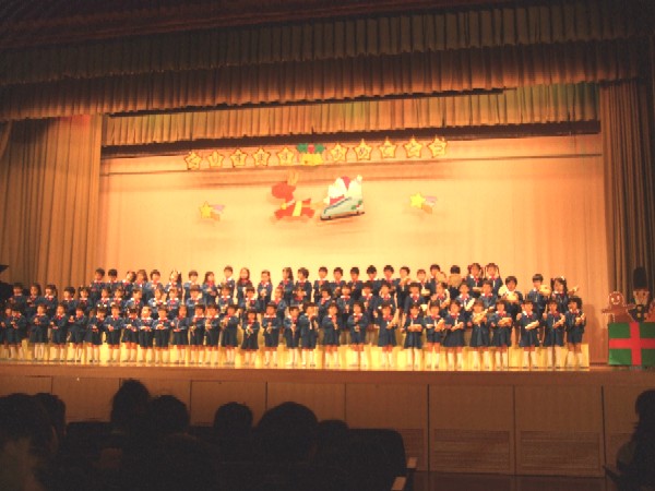 全 2086 件(全418ページ) 過去のページもご覧いただけます ⇒ 前へ 396 | 397 | 398 | 399 | 400 | 次へ 2008/12/16 終業式★ 今日は、2学期の終業式でした。運動会や七五三、クリスマス会・・・たくさんの行事を通して、心も体もひとまわり大きくなった子どもたち☆楽しいクリスマス、元気なお正月を過ごして3学期に、元気いっぱいの子ども達に会えることを楽しみにしています♪ 今日は、2学期の終業式でした。運動会や七五三、クリスマス会・・・たくさんの行事を通して、心も体もひとまわり大きくなった子どもたち☆楽しいクリスマス、元気なお正月を過ごして3学期に、元気いっぱいの子ども達に会えることを楽しみにしています♪ 終業式★ 2008/12/16 今日は、2学期の終業式でした。運動会や七五三、クリスマス会・・・たくさんの行事を通して、心も体もひとまわり大きくなった子どもたち☆楽しいクリスマス、元気なお正月を過ごして3学期に、元気いっぱいの子ども達に会えることを楽しみにしています♪ 今日は、2学期の終業式でした。運動会や七五三、クリスマス会・・・たくさんの行事を通して、心も体もひとまわり大きくなった子どもたち☆楽しいクリスマス、元気なお正月を過ごして3学期に、元気いっぱいの子ども達に会えることを楽しみにしています♪ 2008/12/13 クリスマス会 年長組☆ 聖劇『イエス様のお生まれになったお話』を発表しました。一人一人が心を込めて、役になりきり、みんなでイエス様の誕生をお祝いしました。フィナーレでは、全員で声を合わせて歌を歌いました。きっと、イエス様に届いたことでしょう…☆ 聖劇『イエス様のお生まれになったお話』を発表しました。一人一人が心を込めて、役になりきり、みんなでイエス様の誕生をお祝いしました。フィナーレでは、全員で声を合わせて歌を歌いました。きっと、イエス様に届いたことでしょう…☆ クリスマス会 年長組☆ 2008/12/13 聖劇『イエス様のお生まれになったお話』を発表しました。一人一人が心を込めて、役になりきり、みんなでイエス様の誕生をお祝いしました。フィナーレでは、全員で声を合わせて歌を歌いました。きっと、イエス様に届いたことでしょう…☆ 聖劇『イエス様のお生まれになったお話』を発表しました。一人一人が心を込めて、役になりきり、みんなでイエス様の誕生をお祝いしました。フィナーレでは、全員で声を合わせて歌を歌いました。きっと、イエス様に届いたことでしょう…☆ 2008/12/13 クリスマス会 年中組☆ 緊張しながらも、一人一人が力を出して発表することができました!英語の歌・手話・合奏。イエスさまへのプレゼントに…という思いが、みんなの心をひとつにしていました。みんな、とっても素敵だったね♪ 緊張しながらも、一人一人が力を出して発表することができました!英語の歌・手話・合奏。イエスさまへのプレゼントに…という思いが、みんなの心をひとつにしていました。みんな、とっても素敵だったね♪ クリスマス会 年中組☆ 2008/12/13 緊張しながらも、一人一人が力を出して発表することができました!英語の歌・手話・合奏。イエスさまへのプレゼントに…という思いが、みんなの心をひとつにしていました。みんな、とっても素敵だったね♪ 緊張しながらも、一人一人が力を出して発表することができました!英語の歌・手話・合奏。イエスさまへのプレゼントに…という思いが、みんなの心をひとつにしていました。みんな、とっても素敵だったね♪ 2008/12/13 クリスマス会 年少組☆ 朝から「サンタさんに会えるかな?」という期待と、たくさんの人の前で歌う緊張とでワクワクドキドキ?!しかしいざ幕が上がってみればいつもの笑顔で歌うことができました♪合奏も最後の《チャチャチャ ジャン!!》もバッチリ決まり、100点満点!!念願のサンタさんにも会えて、素敵なクリスマス会になりました☆ 朝から「サンタさんに会えるかな?」という期待と、たくさんの人の前で歌う緊張とでワクワクドキドキ?!しかしいざ幕が上がってみればいつもの笑顔で歌うことができました♪合奏も最後の《チャチャチャ ジャン!!》もバッチリ決まり、100点満点!!念願のサンタさんにも会えて、素敵なクリスマス会になりました☆ クリスマス会 年少組☆ 2008/12/13 朝から「サンタさんに会えるかな?」という期待と、たくさんの人の前で歌う緊張とでワクワクドキドキ?!しかしいざ幕が上がってみればいつもの笑顔で歌うことができました♪合奏も最後の《チャチャチャ ジャン!!》もバッチリ決まり、100点満点!!念願のサンタさんにも会えて、素敵なクリスマス会になりました☆ 朝から「サンタさんに会えるかな?」という期待と、たくさんの人の前で歌う緊張とでワクワクドキドキ?!しかしいざ幕が上がってみればいつもの笑顔で歌うことができました♪合奏も最後の《チャチャチャ ジャン!!》もバッチリ決まり、100点満点!!念願のサンタさんにも会えて、素敵なクリスマス会になりました☆ 2008/12/13 ク