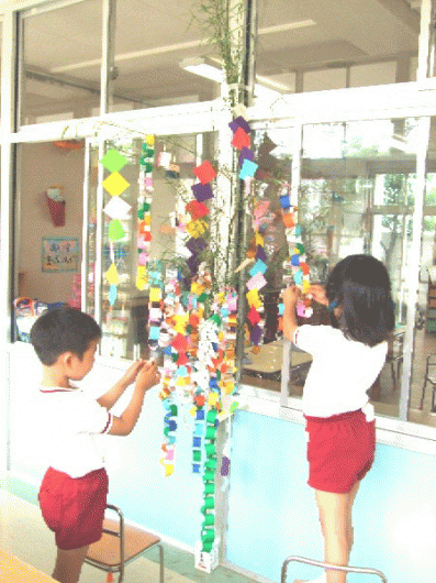 もうすぐ七夕ですね☆子ども達は、先生から七夕のお話を聞いて、それぞれに七夕飾りを作りました。