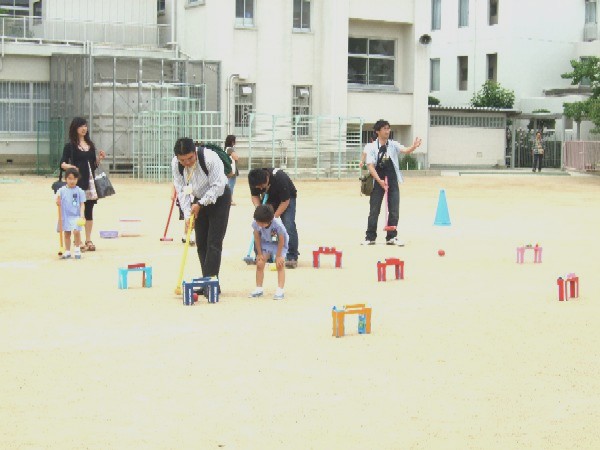 ゲートボールでは、親子で真剣にボールを打っていました♪