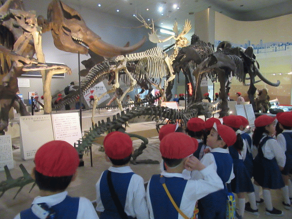 色々な恐竜や、マンモスの骨に圧倒されていました♪