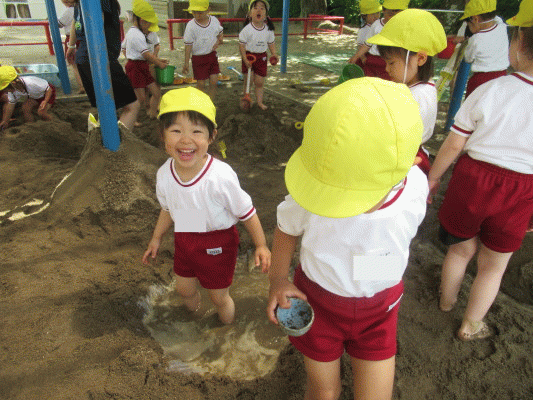 今日は、年少組で泥んこ遊びをしました♪