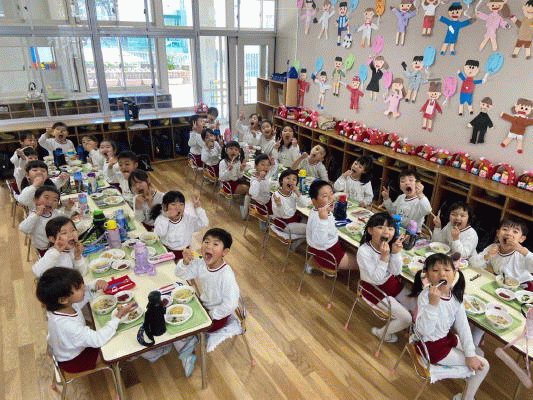 幼稚園に帰ってきてから、みんなでお弁当を食べました。