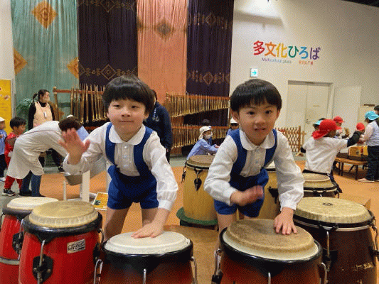 多文化コーナーでは、いろんな国の楽器で遊びました。