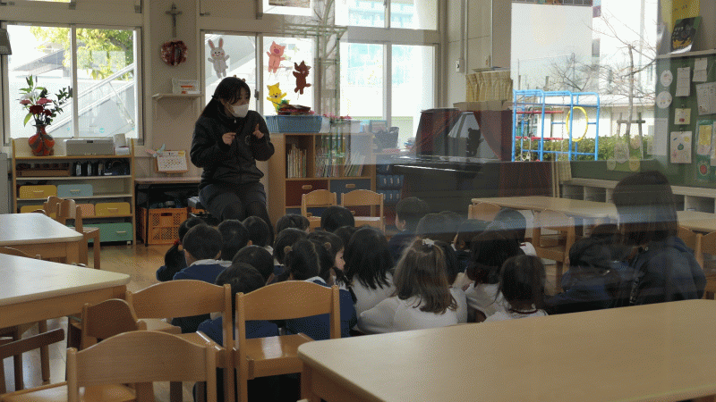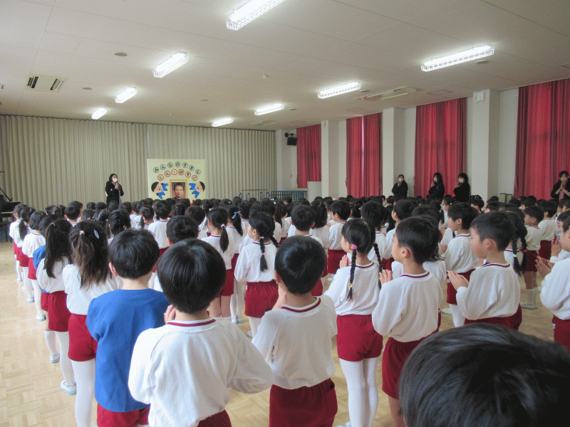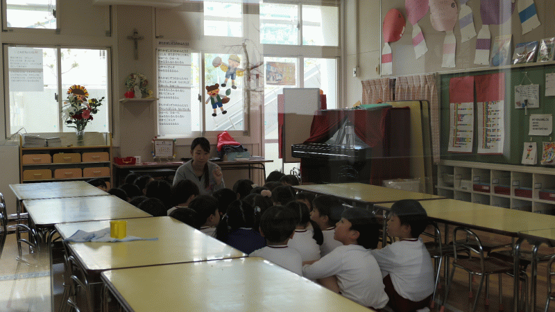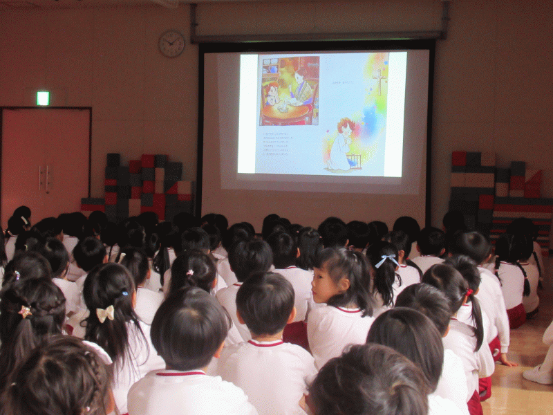 その後、園長先生から「ドン・ボスコが小さかった頃のお話」や、「世界中にドン・ボスコが作った学校があること」「優しい心でお友達と過ごしましょう」というお話しをいただきました。