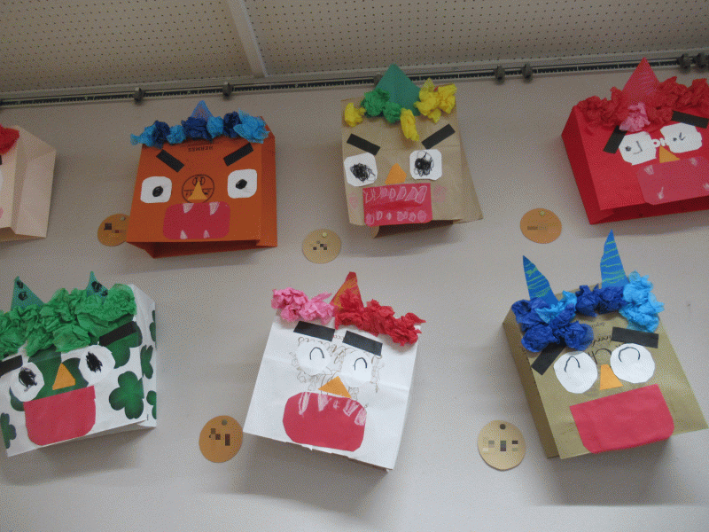 年少組の2月の壁面は「おに」です☆