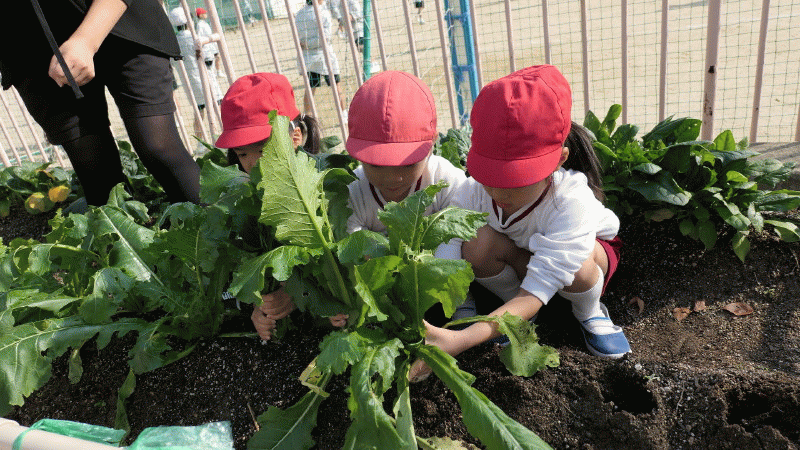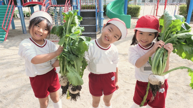 子どもたちは、お当番が来るたびに責任を持って水やりをし、少しずつ成長するカブを見て、収穫するのを楽しみにしていました☆