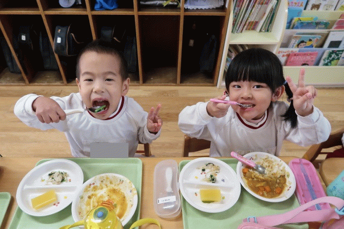 子ども達は、「美味しいね!」と言いながら笑顔で食べていました。ほうれん草が苦手な子どもも、頑張って食べている様子が見られました。