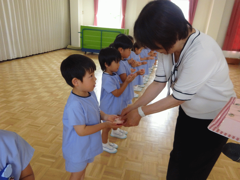 そして、歌と言葉のプレゼントをした後、園長先生からキラキラのおメダイをプレゼントしていただきました☆