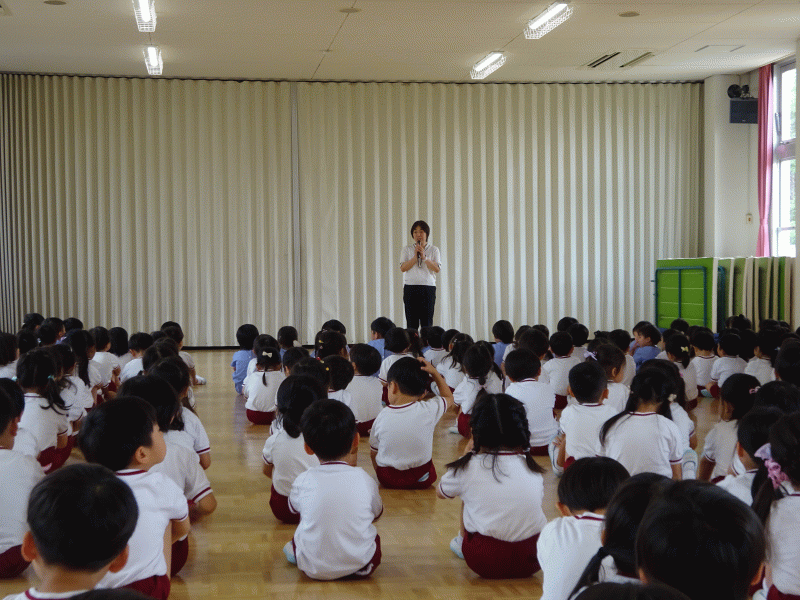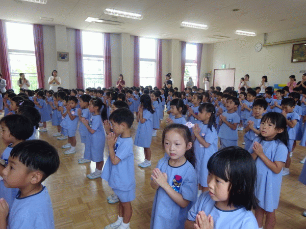 4月に年少さんは入園し、年中さん・年長さんは進級をし、その後、聖母祭や、プール遊びなど様々な事を経験した1学期も今日で終わりとなりました。