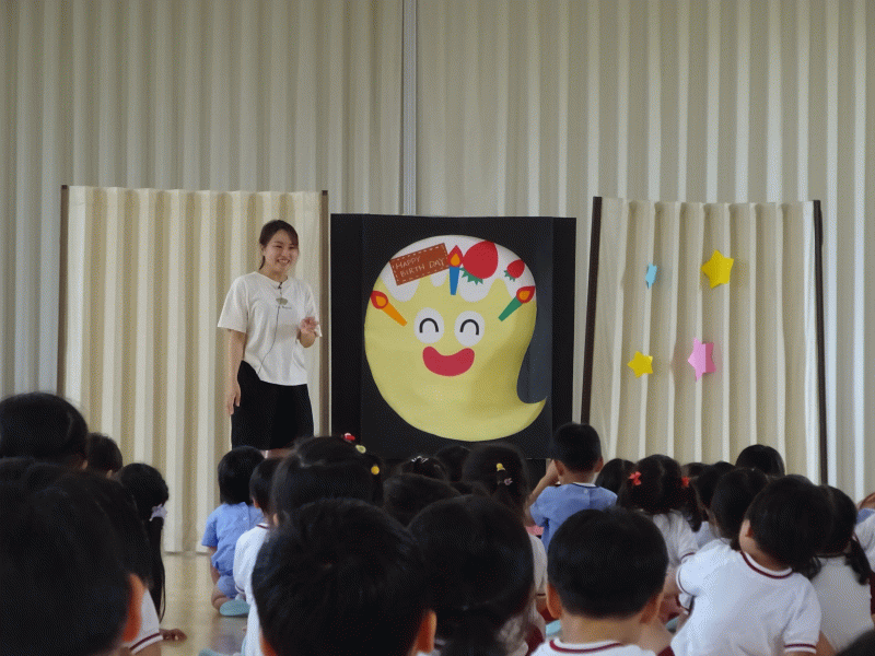 そんな夏休み真っ只中に生まれた、暑さに負けない元気な8月生まれの子どもたちのお誕生会をしました。