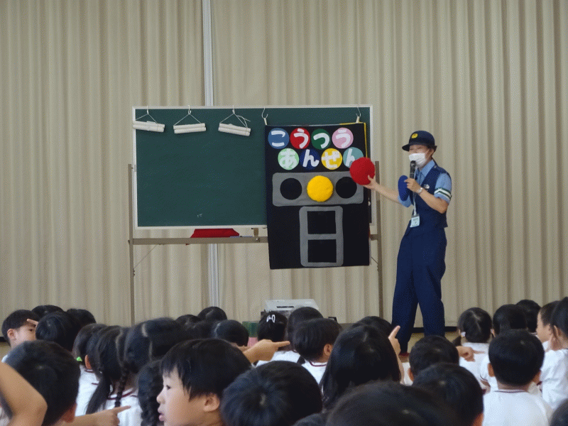 警察署の方が来てくださり、信号や横断歩道について分かりやすくお話をしてくださいました。